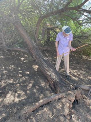 It’s October, now, which in the Phoenix area is usually a time of celebration. The Killer Heat is over. Or not quite as bad, at least. The high today, Oct. 2, is forecast to be 102ºF. Better than 118º anyway. Our rainy season, the “monsoon”, is usually done by now, as well. What started out as a dry monsoon in 2025 went out with a bang, with two or three days in a row of Noah’s ark-worthy rains that caused major floods in parts of the state and soaked our thirsty soil so much that the 25-foot-tall acacia in our back yard couldn’t hold on any more and keeled over, roots in the air. The canopy on this tree is so huge that about half our large yard is covered in tree. The photo above is Dear Husband measuring the trunk and preparing to call someone to cut it up and haul it away. I’m sad, because I loved that tree and the amazing shade it offered. We had an arborist out this morning who wants to charge $1200 to do the job. It’s the same company who charged $350 to take out a standing tree for us three years ago. This one has a much wider canopy, but is it THAT much wider? We’ll get a couple more quotes and see how the world stands now.